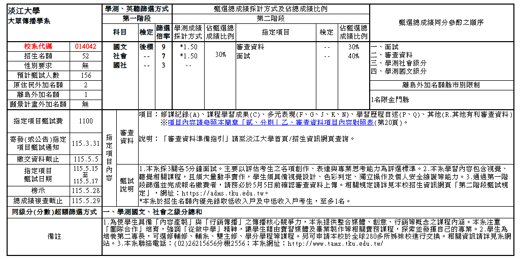 ◆ 淡江大學招生資訊網頁「第二階段甄試規定」:https://adms.tku.edu.tw
